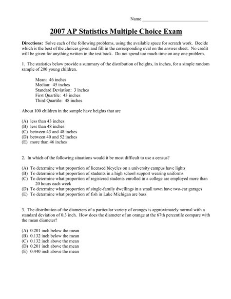 Read Online 2007 Statistics Multiple Choice Answers PDF